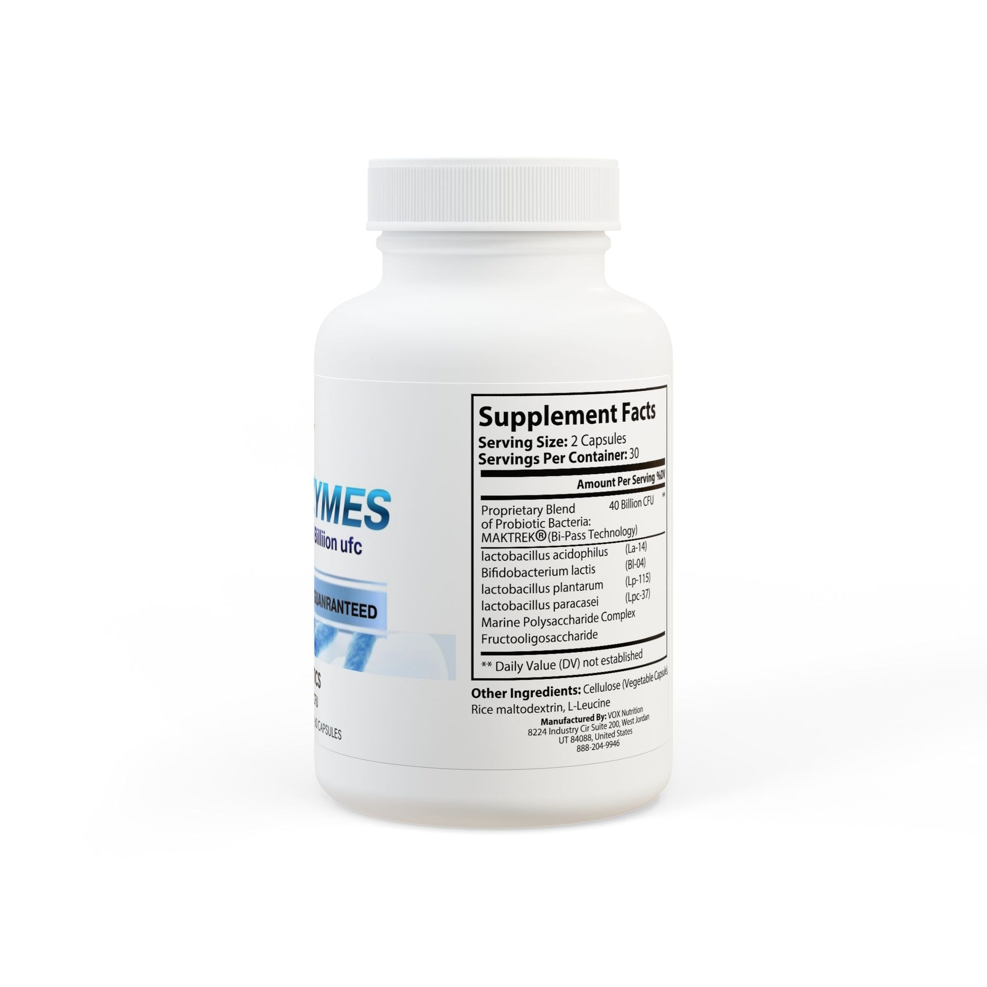 Produced in an FDA-registered, GMP-certified, and lab-tested facility, Ultra Zymes™ delivers quality and consistency in every capsule. Each serving provides 40 billion CFU at the time of manufacture, using advanced MAKTek® technology designed to help maintain potency through the product’s shelf life.